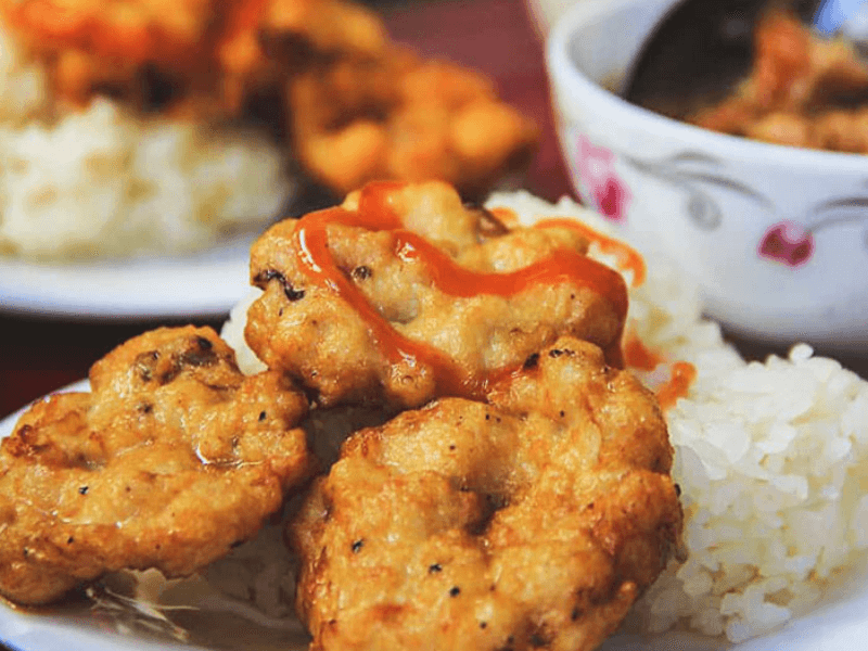 Xôi nếp ăn kèm chả mực
