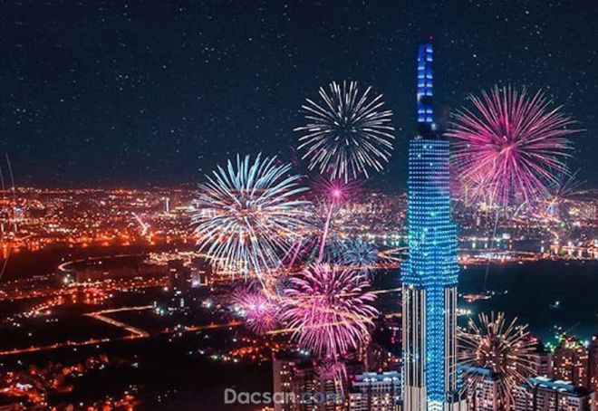 Tại tòa nhà cao nhất Đông Nam Á - Landmark 81, du khách cũng sẽ dễ dàng tìm được một vị trí ngắm pháo hoa vô cùng ổn áp và không đông người. Gợi ý là quán lounge ở tầng 75, 76. Tuy nhiên, bạn cần đặt bàn trước và sử dụng dịch vụ ở đây. Theo tham khảo thì bạn bỏ ra khoảng 500k trở lên là có một single combo gồm bánh và đồ uống là có thể xem bắn pháo hoa view đẹp.