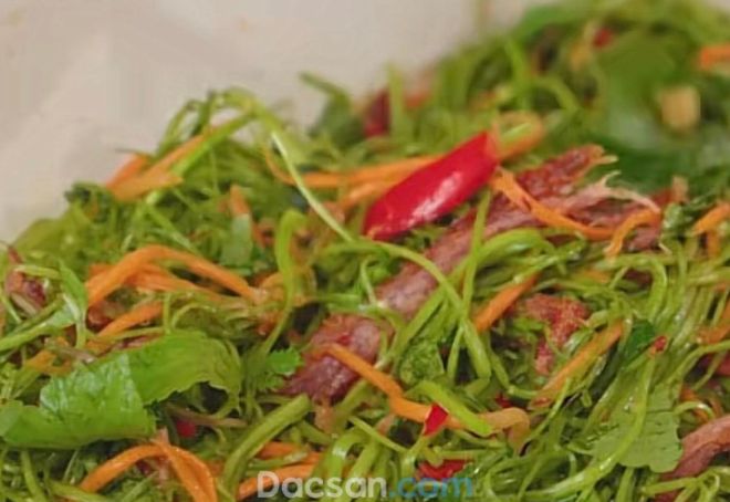 2.1 Cách làm gỏi thịt trâu gác bếp rau muống