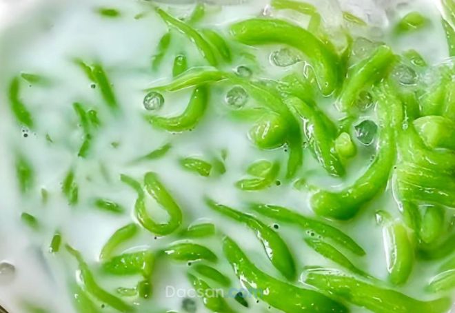 Sợi bánh lọt dai dai, quyện với nước cốt dừa béo ngậy và mùi thơm lá nếp, hấp dẫn vô cùng