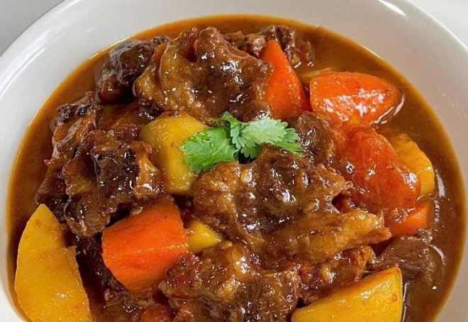 Món bò hầm cà chua thêm cà rốt, khoai tây vị chua ngọt rất hấp dẫn (Ảnh: sưu tầm)