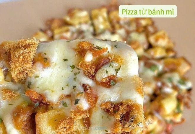 Pizza làm từ bánh mì ăn cũng rất chất lượng