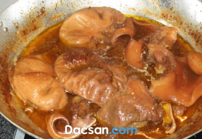Nước phá lấu ngon phải ngấm gia vị và có nước cốt dừa, hãy nhớ trở đều từng miếng lòng khi hầm.