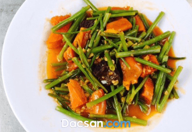 Sau khi đã ngấm, bắc chả đun nóng dầu và phi thơm hành tỏi rồi cho lòng bò và dạ dày vào chảo chiên cho chín vàng đều.
