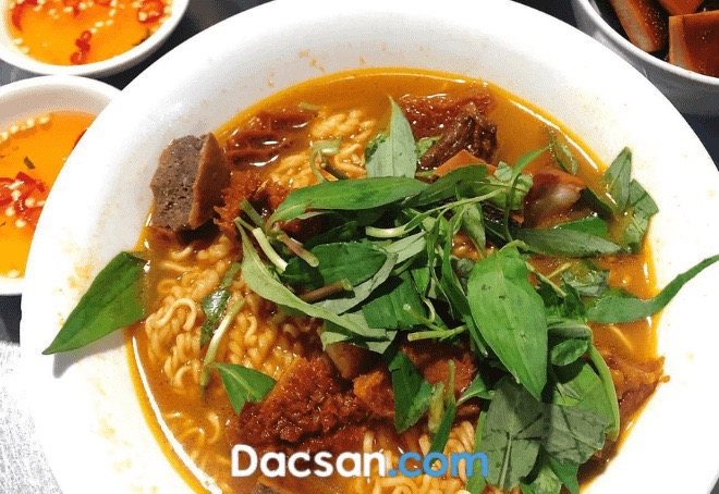 Phá lấu ăn cũng với bún hoặc mì và cho thêm ít hành ngò giúp tăng thêm hương vị và dễ ăn hơn.