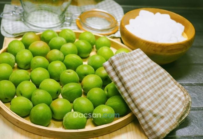 Chọn mơ xanh loại nhỏ, nhặt bỏ quả bị thối, hỏng nát.