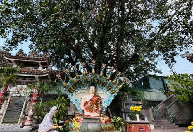 Trong đó, bức tượng Đức Địa Tạng Bồ Tát đúc bằng 61kg kim loại quý được đặt trong khuôn viên gây ấn tượng mạnh. Tượng Phật A Di Đà và tượng Phật Thích Ca ngồi thiền dưới cây bồ đề cũng khiến du khách chú ý.