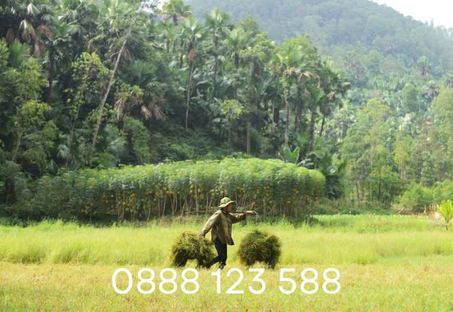 Cọ xanh mướt mải bên sườn đồi. Cọ lặng lẽ bên những nếp nhà lợp lá cọ màu thời gian nâu trầm. Giữa đồi cọ, những chú bò nhởn nha gặm cỏ, một chú trâu nằm ngủ im lìm giữa hàng trăm lính cọ “canh gác”.