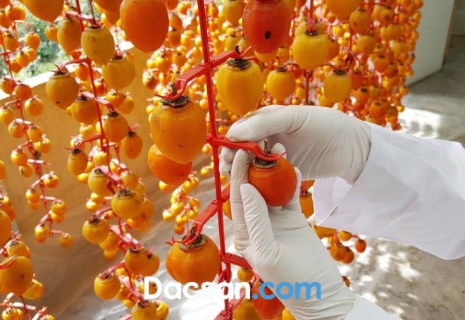 Sản phẩm hồng treo gió của Dacsan.com là hồng treo gió chính gốc Đà Lạt, làm từ nguyên liệu hồng trứng, treo trong xưởng đảm bảo vệ sinh cho thành phẩm thơm, dẻo ngọt, sánh quyện, an toàn. Xưởng treo hồng với đầy đủ các lớp: lớp ngoài phủ bạt chống mưa và sương, lớp bên trong là lưới chống côn trùng xâm nhập. Bên cạnh đó, cơ sở sử dụng rượu để khử trùng trái hồng trước khi treo chứ không quết lưu huỳnh lên trái và cuống hồng như một số cơ sở khác.