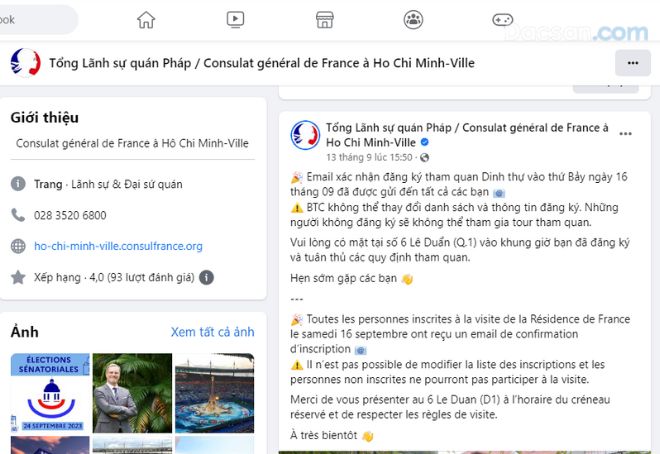 Du khách cần đăng ký trước qua link đăng tải trên Facebook và trang web của Tổng lãnh sự quán Pháp.