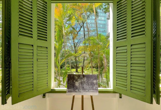 Công trình được coi là biểu tượng của kiến trúc Đông Dương thế kỷ 19. Bốn mặt của tòa nhà đều có hành lang bao quanh. Điểm nhấn độc đáo là với những cửa chớp sơn màu xanh lá cây cao gần 5m. Màu xanh của khung cửa giống như đường viền của bức tranh cây lá tươi dẹp. Đây cũng là khu vực chụp hình rất đẹp.