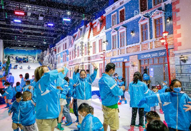 Giữa thành phố đầy nắng phương Nam nhưng bạn hoàn toàn có thể tham gia trượt tuyết nếu đến với Snow Town Saigon. Tuyết ở đây 100% là tuyết thật nhen, tổng diện tích lên tới 4000m2. Đến với địa điểm vui chơi ở Sài Gòn này, bạn không chỉ được sờ vào tuyết, ngắm tuyết, check-in với tuyết mà còn có thể thưởng thức nhiều món ăn ẩm thực đa dạng trong cái lạnh không hề giả trân.