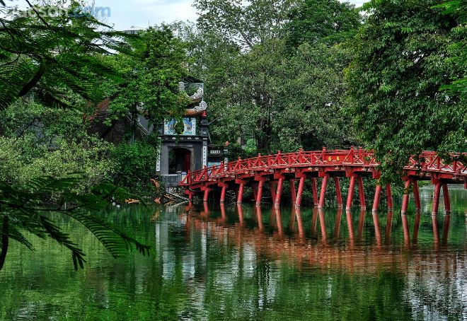 Hồ Gươm là một hồ nước ở trung tâm thành phố có khung cảnh thơ mộng. Ở đây, bạn có thể thấy những hoạt động mang tính biểu tượng cho nhịp sống thủ đô từ hình ảnh người dân tập thái cực quyền xung quanh hồ cho tới những chiếc xích lô. Khi băng qua cây cầu đỏ (cầu Thê Húc), du khách có thể khám phá đền Ngọc Sơn và các công trình xung quanh như tháp Bút, Đài Nghiên. Giá vé vào cổng đền Ngọc Sơn với người lớn là khoảng 30k.