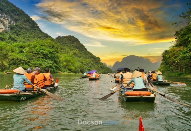 Ninh Bình cách địa điểm du lịch Hà Nội không xa, lại có đường cao tốc nên chỉ mất hơn một giờ di chuyển. Do vậy, nếu đi du lịch Hà Nội, bạn có thể kết hợp khám phá Ninh Bình trong ngày. Tại Ninh Bình, du khách có thể tới địa điểm du lịch Tam Cốc, thuê thuyền để du ngoạn trên sông ngắm những cụm đá vôi sừng sững, những cánh đồng lúa hay hồ sen đẹp như tranh. Sau đó, chinh phục hành trình leo lên Hang Múa để ngắm toàn cảnh non nước hữu tình.