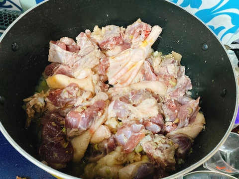 Bước 1: Ướp vịt đã được chặt sẵn với các gia vị, nguyên liệu trên ít nhất 20 phút. Gia vị mì chính, mắm nên cho vừa phải ướp để vịt ngấm và đậm. Nhớ để lại 1 ít xả, hành, tỏi, gừng đã được đập giập để phi mỡ cho món ăn càng đậm thêm hương vị.