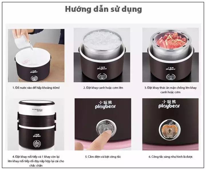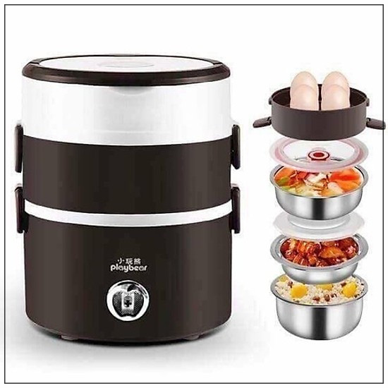 Các mẹ có thể sử dụng nồi để nấu cơm và 2 món khác cùng lúc. Các khay inox có thể tháo rời để vệ sinh, tiện lợi hơn nhiều so với nồi điện mini 2 ngăn. Điểm trừ của sản phẩm này có lẽ chỉ là không thể nấu các món chiên, nướng, xào mà thôi.