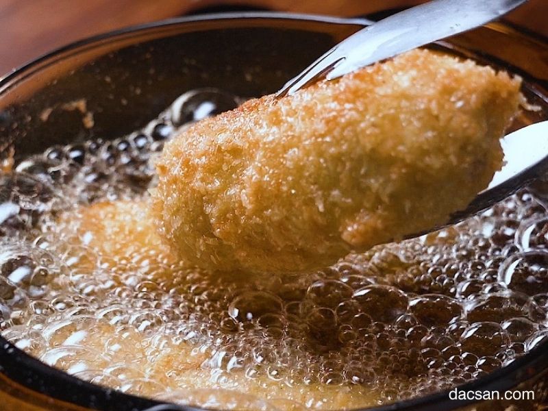Lưu ý: Khi chiên nem chua phải đảm bảo dầu ngập mặt nem để nem được vàng giòn các mặt.