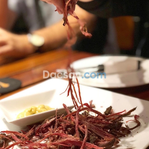 1. Thịt trâu gác bếp: còn gọi là thịt trâu khô, thịt trâu hun khói. Chỉ mất vài phút hấp hoặc nướng là có món lai rai. Thay thế cho mấy món quen thuộc như khô mực, khô gà, khô heo... Tin chắc rằng thịt trâu gác bếp sẽ khiến bạn thấy ngon bá cháy lun.