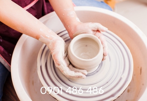 Tạo hình và dáng vật: Nghệ nhân sử dụng bàn tay và bánh xe cầm tay để tạo hình và dáng vật cho sản phẩm.