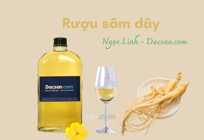 Rượu sâm dây thương hiệu Dacsan.com là đồ uống được ngâm từ rượu ngon và một loại sâm mọc ở vùng núi Ngọc Linh (Kon Tum).