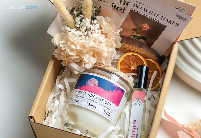 Nến thơm được dùng phổ biến trong cuộc sống. Mùi hương của chúng đem lại những cảm xúc thư giãn, dễ chịu. Nến thơm cũng giúp không gian sống thêm sang trọng. Do vậy món quà tặng là bó hoa cùng hộp nến thơm cũng là một gợi ý tuyệt vời về quà tặng 8/3 cho nửa kia.