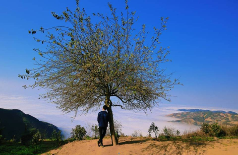 Cây táo mèo ngự trị lẻ loi trên đỉnh Gió, thuộc xã Háng Đồng, huyện Bắc Yên, Sơn La.